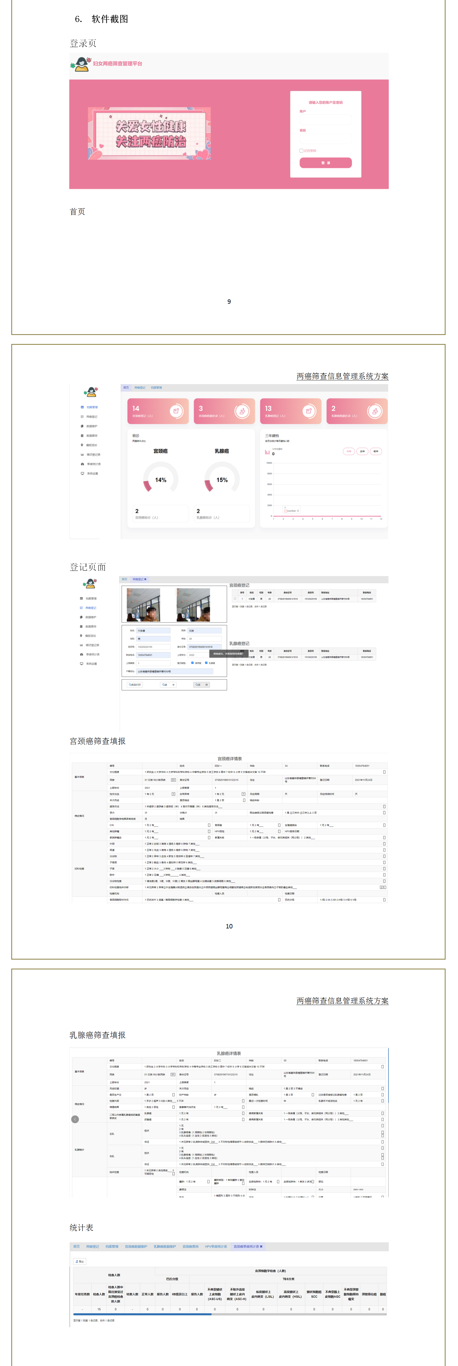 | 1 | 兩癌篩查信息管理系統(tǒng) | 完成兩癌篩查婦女檔案登記及篩查填報工作。醫(yī)院統(tǒng)一部署,各科室分權(quán)限及賬號。 | - |